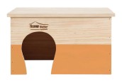 "Una bella casetta di buona qualità! Il mio coniglio nano adora nascondersi all'interno o guardare dall'alto standogli sopra! In più, il fatto che sia in legno gli permette di rifarsi i denti e le unghie."